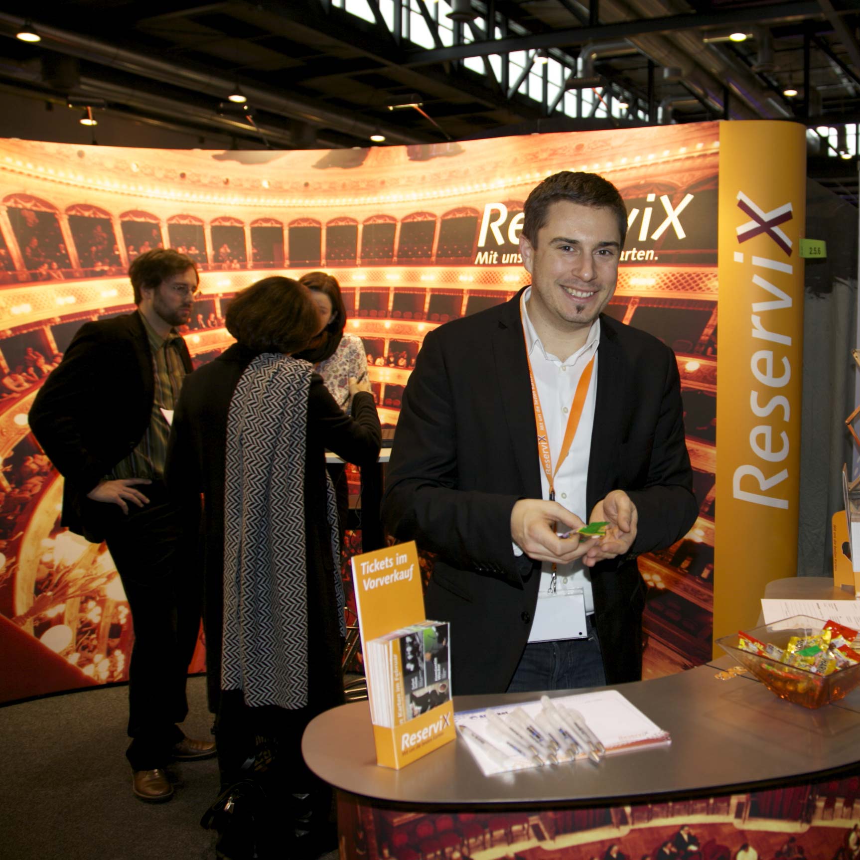 Für die Freiburger Kulturbörse 2011 war ein Eckstand von 30 qm gebucht. Ein modulares System war gewählt, nun galt es Wandflächen und ein Podium/Tresen zu gestalten. Idee war, den selbem Stand ebenfalls auf der „Inthega“ zu nutzen. Dort öffnete sich der Stand allerdings zur linken Ecke hin, während er auf der Kulturbörse am rechten Ende zum Gang hin offen war.