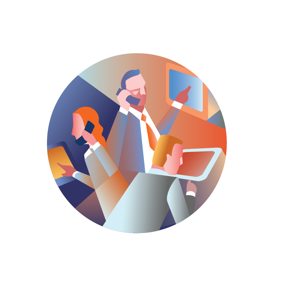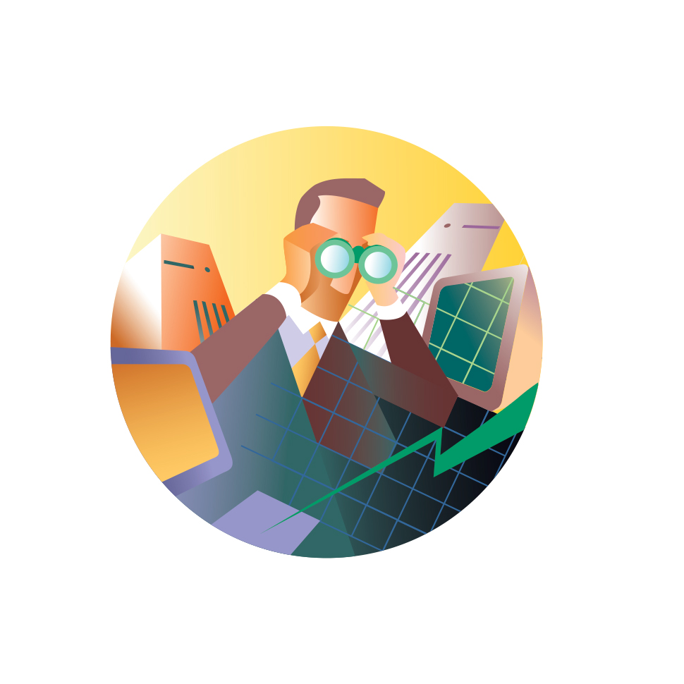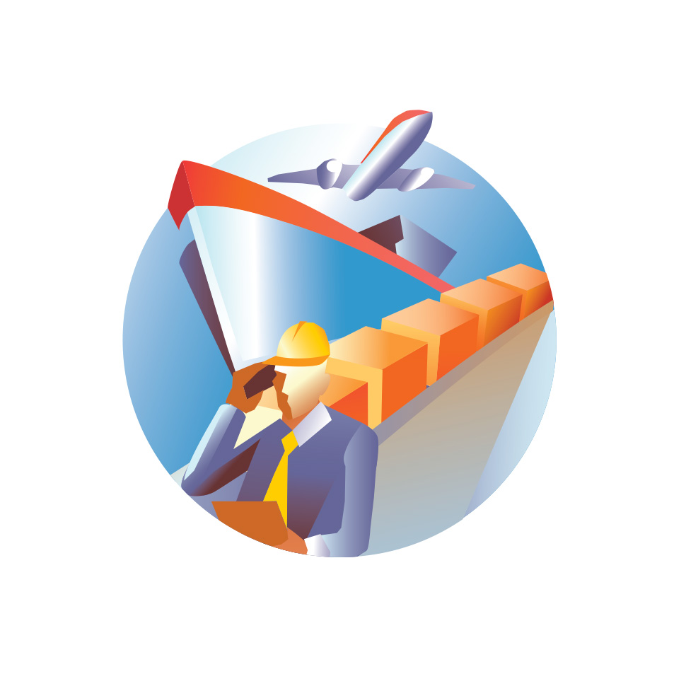 Illustrationen für den Software-Anbieter „electron economy“ im Auftrag von „Maushaus Inc.“ in 2001. Die Illustrationen stellen verschiedene Stationen innerhalb der Logistikkette dar.
